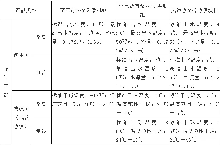 其實(shí),對(duì)于空氣源熱泵兩聯(lián)供機(jī)組來(lái)說(shuō)現(xiàn)在市場(chǎng)上一般會(huì)按使用區(qū)域不同分為低溫機(jī)和常溫機(jī),低溫機(jī)也參照GB/T25127.1或GB/T25127.2常溫機(jī)參照表中所列。
