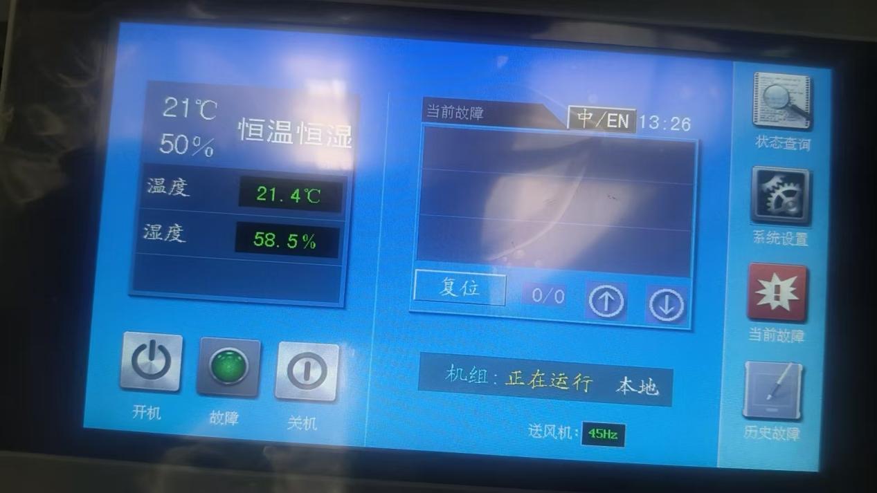 該項目對實驗室房間溫濕度有較高的要求,配全新風降溫除濕機風量3000m³/h,房間內有風機盤管降溫,溫度≤25℃,相對濕度≤60%,配全新風降溫除濕機,設備就夏季使用,秋冬季節不使用。為滿足這一需求,我司為實驗室設置了一套全新風除濕處理機組系統,并選用了全新風降溫除濕機作為主備設備。